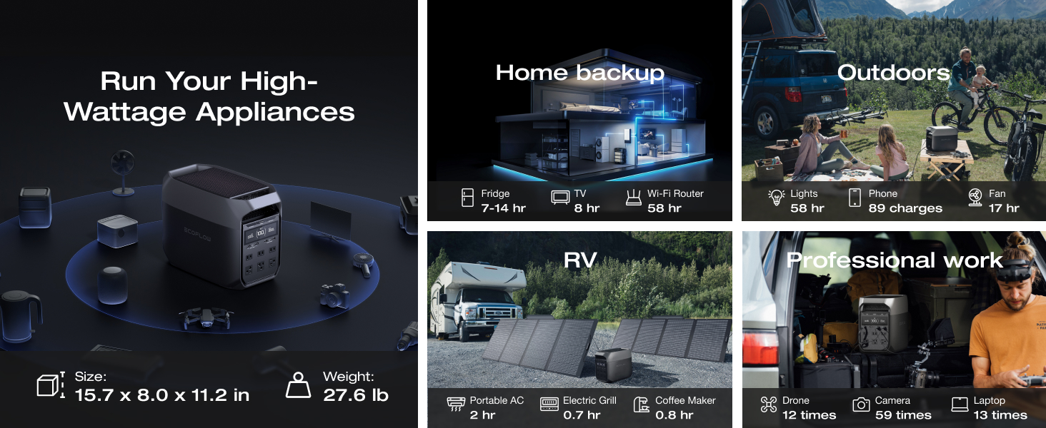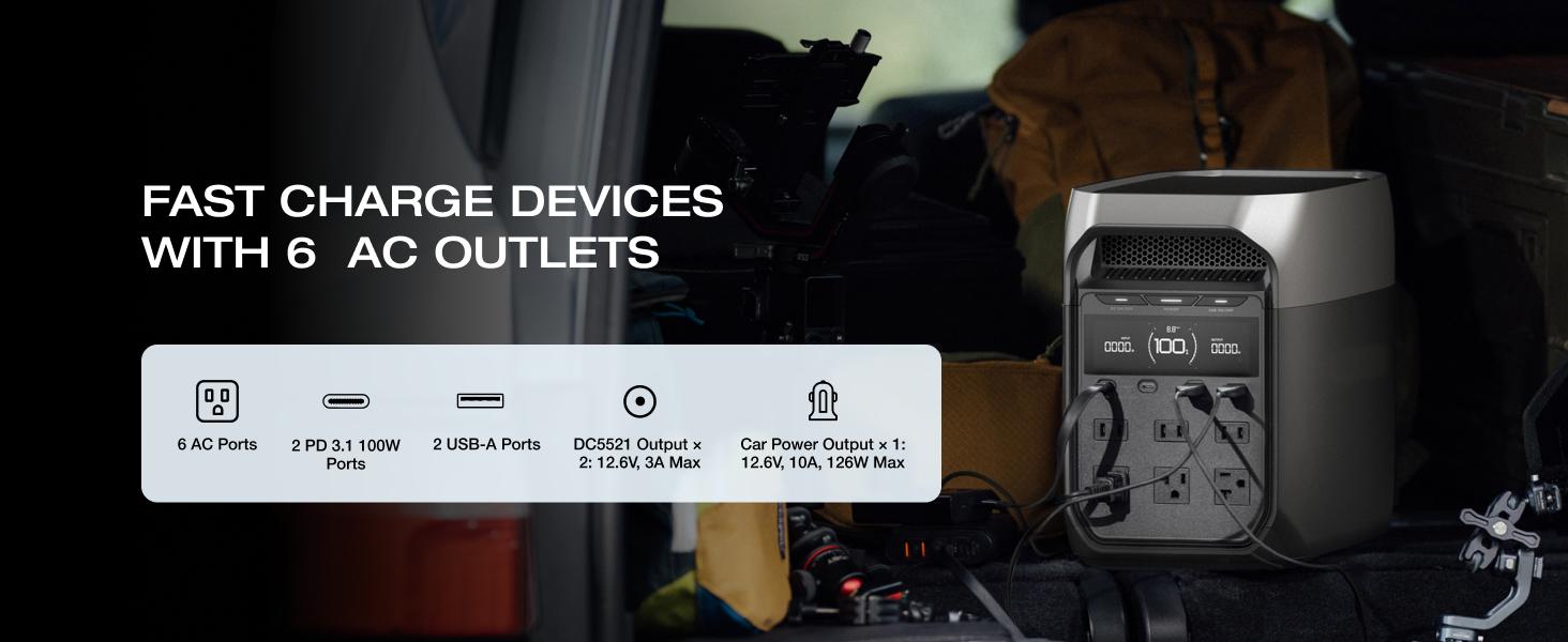 The variety of output ports (AC, USB-C, and DC) allows simultaneous charging of multiple devices, from laptops to appliances, without performance loss.