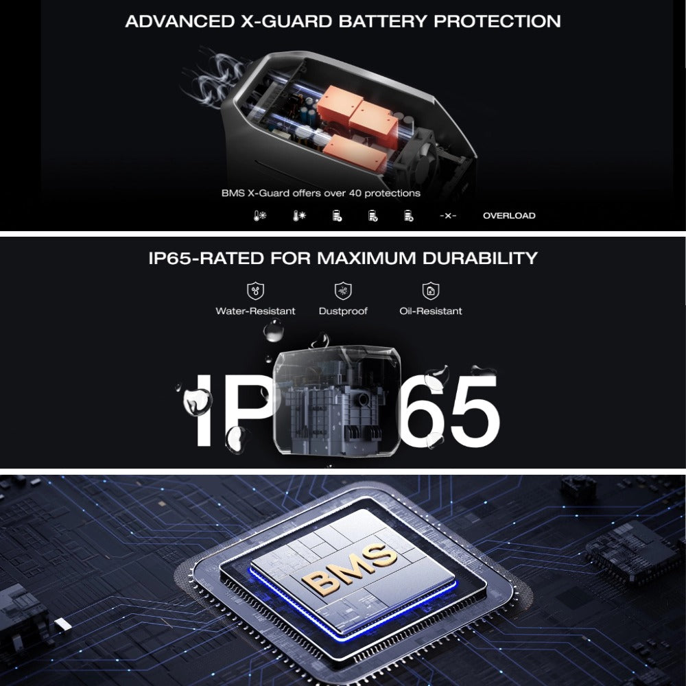BMS:Advanced BMS with 40+ safeguards against current, voltage, and heat prevents thermal runaway for maximum safety.