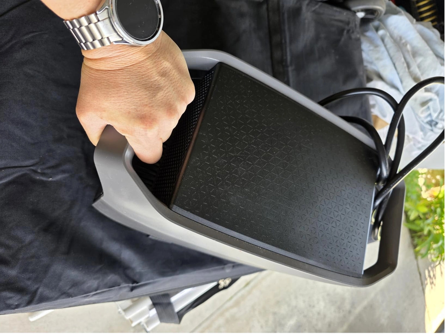 5% smaller than before — about the size of a small microwave. Fits easily in the trunk, front seat, or back seat without taking up too much space. It’s lightweight too, weighing about the same as an average adult corgi.